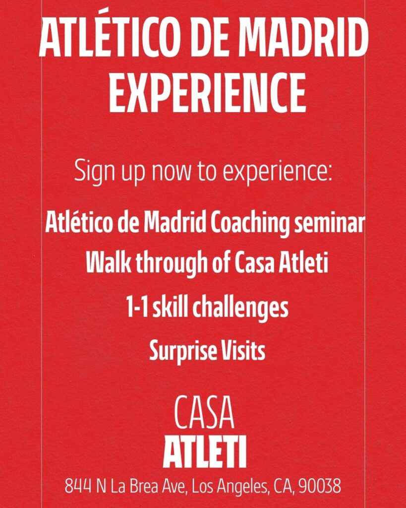 Casa Atleti is an interactive pop-up venue celebrating all things Atlético de Madrid, set in Los Angeles. Visitors can enjoy a wide range of attractions, including food trucks, rooftop sports courts, relaxation areas, sneaker customization sessions, augmented reality experiences, coffee stations, gaming areas, and a showcase of the club’s trophies. The space will also host exclusive merchandise releases, live art and music performances, educational workshops, comedy shows, and a daily content studio featuring live podcast recordings and guest appearances.